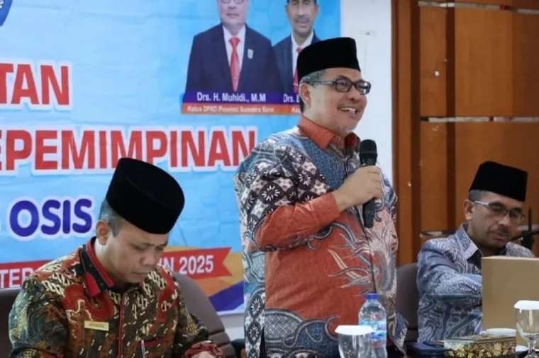 Padang, Matakata.co – Ketua DPRD Provinsi Sumatera Barat, Drs. H. Muhidi menghadiri sekaligus menjadi narasumber dan motivator dalam acara pembukaan Bimbingan Teknis (Bimtek) Penguatan Latihan Dasar Kepemimpinan (LDK) bagi pengurus OSIS SMK se-Sumatera Barat Tahun 2025, Sabtu (12/7) di aula SMKN 6 Padang.