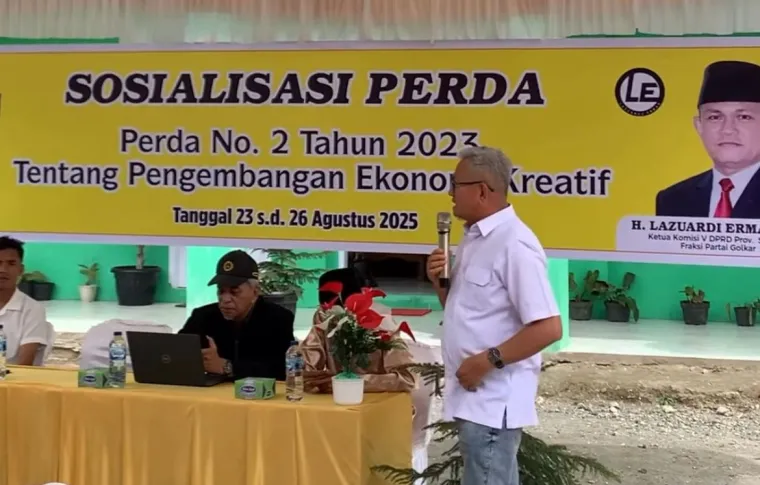 Agam, Matakata.co – Anggota DPRD Sumbar, Lazuardi Erman melaksanakan Sosialisasi Peraturan Daerah (Sosperda) di Matur, Kabupaten Agam, Minggu (24/8/2025). Kegiatan ini mengangkat Perda No. 2 Tahun 2023 tentang pengembangan ekonomi kreatif.